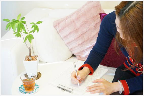 初回は、詳細にカウンセリングさせていただき、現在のお体お肌状態やお悩み・普段の生活に関する質問をさせて頂きます。