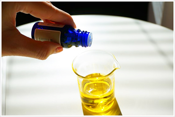 香りを確認しながら本日トリートメントで使うブレンドオイルを作成します。