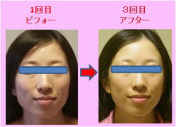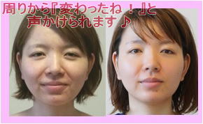 写真で自分の顔を見比べてみると、ビックリするくらい違っていて、顔が全体的にスッキリしていたので、またお願いします!