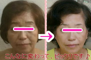 ほうれい線(特に右)が、薄れ、リフトアップした。