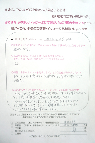(以前から通っていて)とても気持ち良いマッサージなので、続けたいと思った。